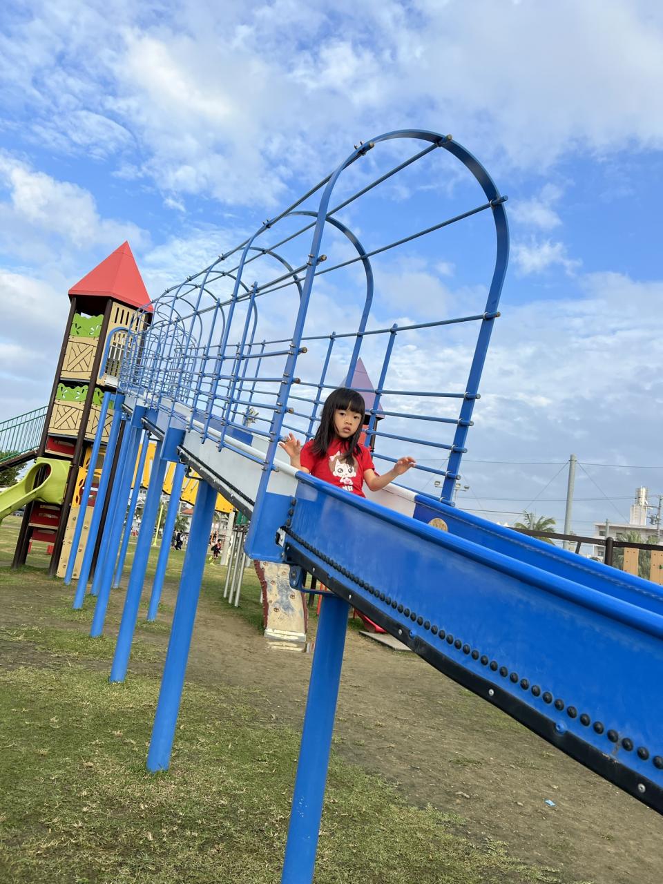 沖繩旅遊帶住小朋友一定會去公園玩,因為呢度嘅公園大又好玩又唔洗入場費,真係可以玩大半日。公園通常連住一大片草地,平日嚟真係人都無個,好似包場野餐咁🤣🤣,呢個公園好近彤彤昕昕👧🏻🧒🏻學校,有時放咗學就過嚟放下電,如果見到我哋記得say個hi 😆😆
