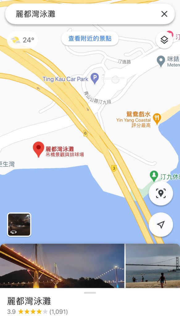 對住青嶼幹線和汀九橋 ,幾咁氣勢磅礡😎,它是唯一在荃灣區有沙灘排球場的泳灘,曾有「新界 #淺水灣」之稱。所以當日都見到有人打 #沙灘排球🏐️。