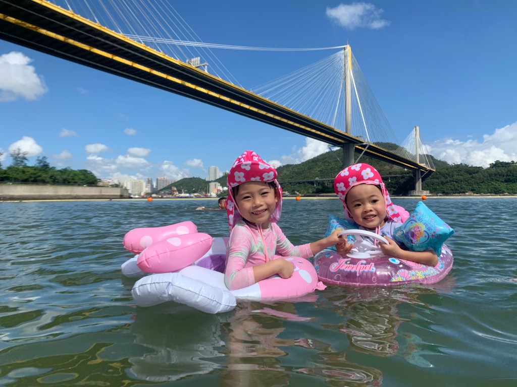 今次彤彤昕昕仲游左去浮台tim丫😆😆彤彤話好似上左架船咁。當日水都好清,浮台旁邊有好多小魚仔🐠都可以望得好清楚😍